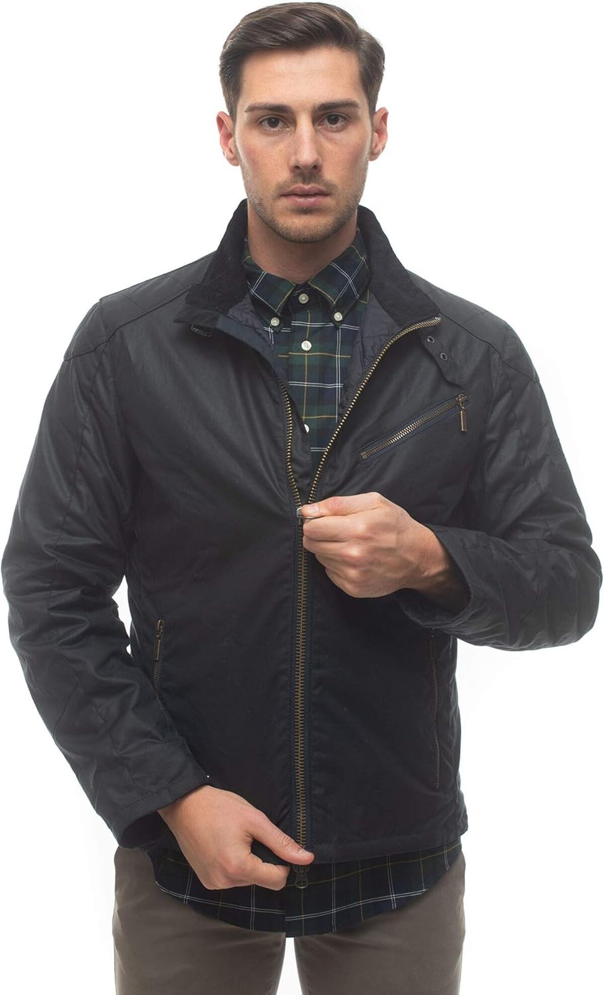 Dès le premier regard, la veste Barbour B.Intl Placer Wax se distingue par son style intemporel et élégant. La couleur, bien que jugée un peu sombre par certains, s’inscrit parfaitement dans la tradition des vestes cirées classiques. Ce choix chromatique lui confère une allure sobre et sophistiquée, idéale pour les amateurs de mode discrète mais raffinée. La coupe de la veste est ajustée, soulignant la silhouette sans la contraindre, ce qui est un atout majeur pour ceux qui recherchent à la fois confort et élégance.