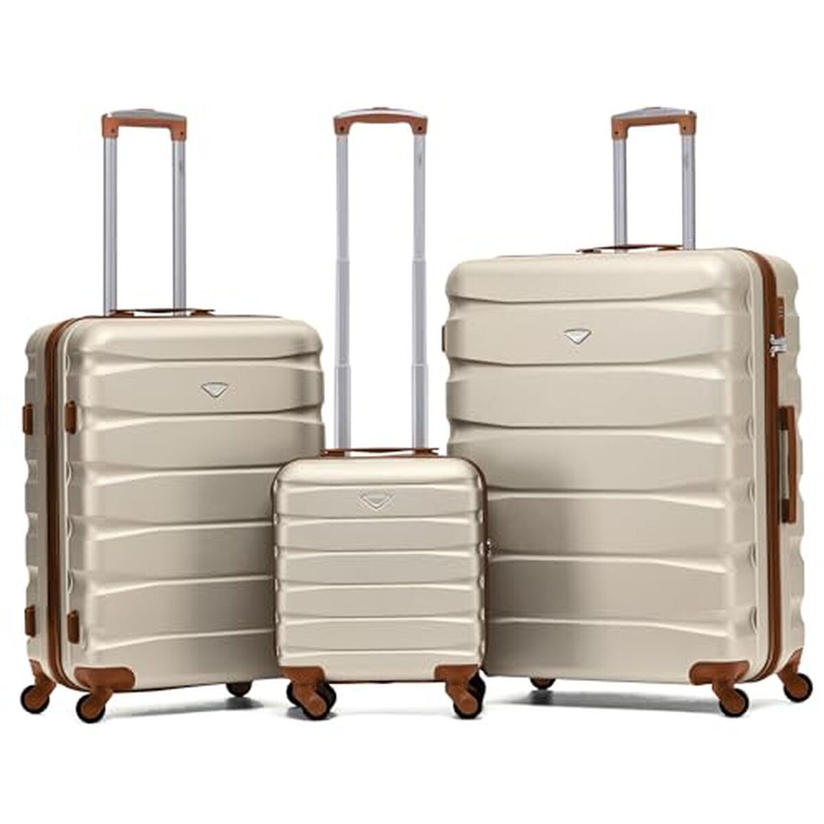- Kono Set de 6 Valises de Voyage Rigide (55/65/74cm) à 4 roulettes, avec Vanity Case, Sac de Voyage Pliable pour Le Sport et Trousse de Maquillage, Blanc CrèmeValise 6 pièces : Vanity Case, 28x21x15 cm ; Capacité : 9 litres ; Poids : 0.67 kg. Valise de cabine, 55x40x22 cm ; Capacité : 38 litres ; Poids : 2.5 kg. Valise moyenne, 65x41x26 cm ; Capacité : 64 litres ; Poids : 3.1 kg. Valise grande, 74x48x30 cm ; Capacité : 100 litres ; Poids : 4 kg. Sac de week-end, 40x30x22 cm ; Poids : 0.64 kg. Trousse de toilette, 22x12x9 cm ; Poids : 0.11 kg. Ce set de 6 valises de voyage répond à tous vos besoins de déplacement. Matériau : La coque rigide de la valise à 4 roulettes est fabriquée en ABS de haute qualité. Sa texture est extrêmement résistante aux rayures, légère et durable, permettant à la valise de conserver son aspect élégant voyage après voyage. Elle deviendra ainsi le meilleur compagnon de vos déplacements. Confort de transport : Cette élégante valise de voyage est équipée de 4 roulettes pivotantes offrant une maniabilité à 360 degrés, rendant votre voyage plus facile et plus agréable. La poignée rétractable à trois niveaux de réglage de hauteur et la poignée de confort facilitent la manipulation de la valise ; de plus, vous pouvez attacher la trousse de beauté portable sur le dessus, car le vanity case est doté d'un élastique noir à l'arrière. Serrure TSA : La serrure TSA intégrée sur le côté permet au personnel de sécurité aéroportuaire, muni d'une clé spéciale, d'inspecter vos bagages sans forcer l'ouverture ni endommager la valise. Ainsi, la sécurité de vos effets personnels à l'intérieur des bagages est garantie. Conception de compartiments organisés : L'intérieur de la valise comporte deux compartiments spacieux, entièrement doublés, permettant de ranger vos affaires des deux côtés. La pochette à cosmétiques est dotée d'une fermeture à glissière et d'une pochette en filet, idéales pour ranger les articles de toilette, les produits cosmétiques, les petits objets et divers effets personnels.